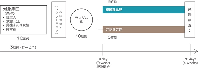 4回(スクリーニング兼摂取前、摂取4週間後、摂取8週間後、摂取12週間後) |