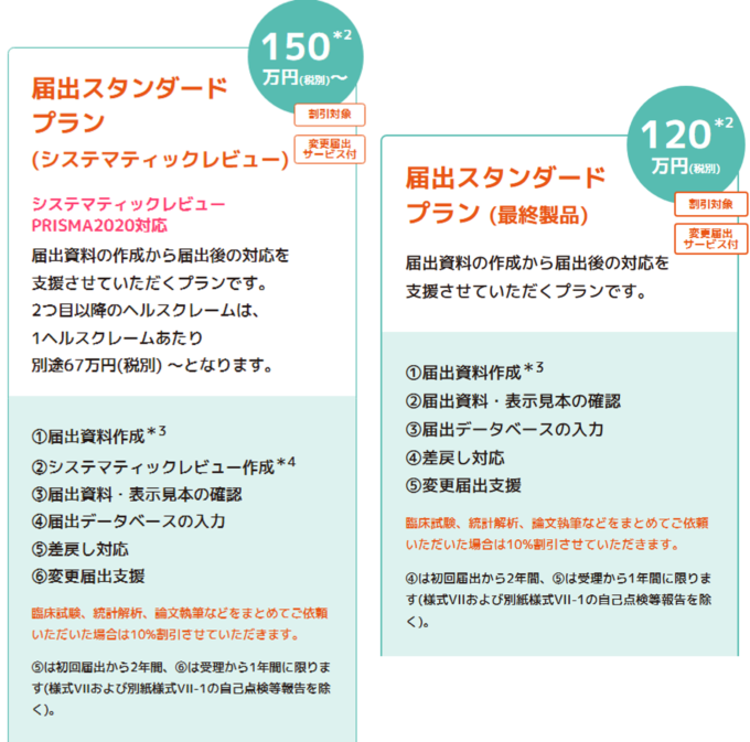 *4 システマティックレビュー作成に含まれるのは、別紙様式V-1-2、V-4~17 (メタアナリシスおよびV-15は、別途費用) です。システマティックレビュー作成時の調査文献数によって、価格が変動します。