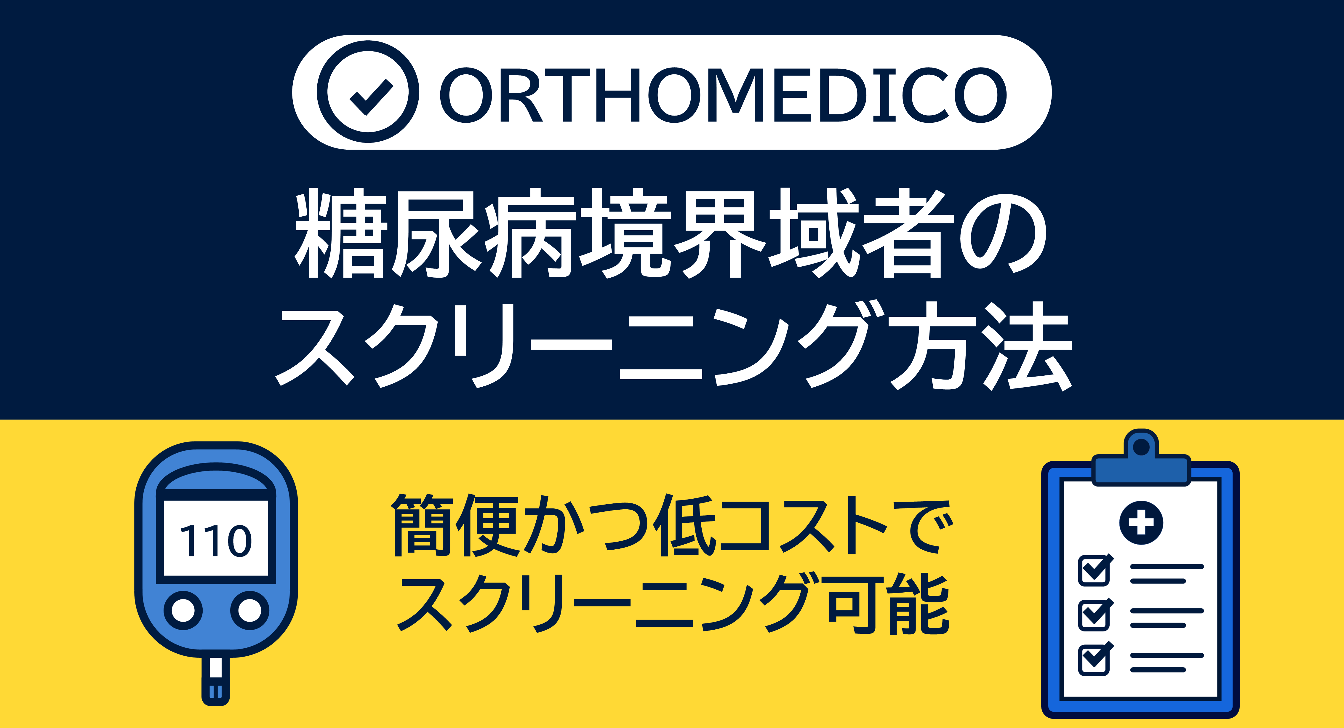 株式会社オルトメディコ (東京都文京区 代表取締役 社長 山本和雄) は、糖尿病の発症リスクを抱える「境界域」にある人々を簡便かつ科学的に推定できる新しいスクリーニング方法を開発しました。本発明は、食品・サプリメントの機能性評価にとどまらず、生活習慣病予防に向けた応用が期待されています。