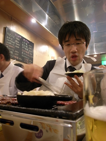 お祝いムードに、市川もノリノリで肉を焼きます。