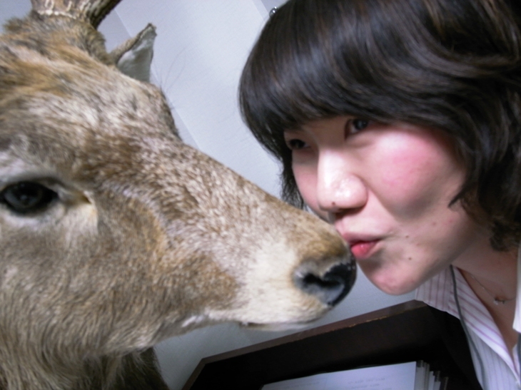 早速、鹿とチューしとる・・(—_—)!! 照井さんを発見!!!