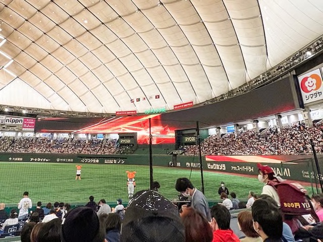 以前、コロナ禍にも東京ドームでの試合を観ましたが、その時よりたくさん人が入っています!