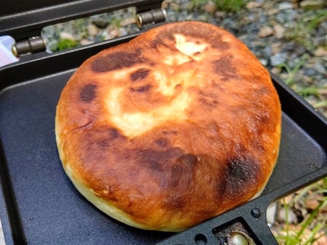 その場でチーズパンを焼いたり、持ってきたお弁当を食べたりして休憩します。