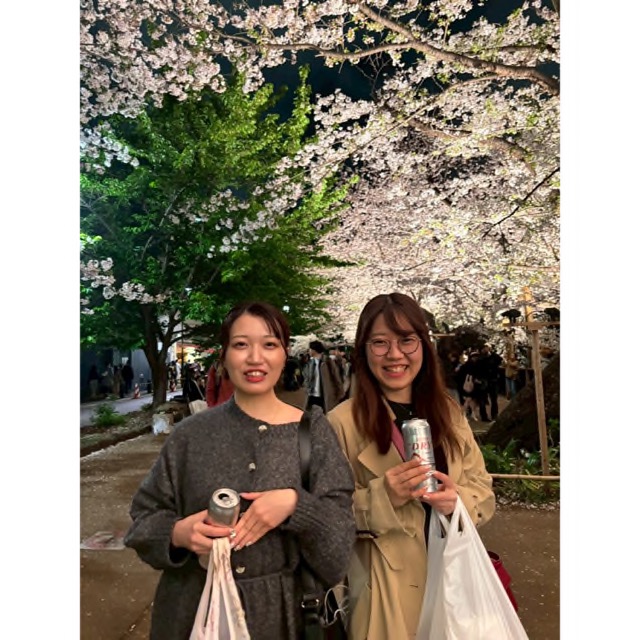 当日の夕方に急に決めたので、急いでお花見ができるところを探して、波多野さんが見つけてくれました🌸