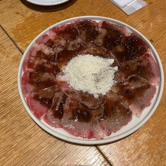 私が撮影していたお料理はこちらの黒毛和牛の炙りカルパッチョと濃厚チーズリゾットで、どちらもとてもおいしかったです。