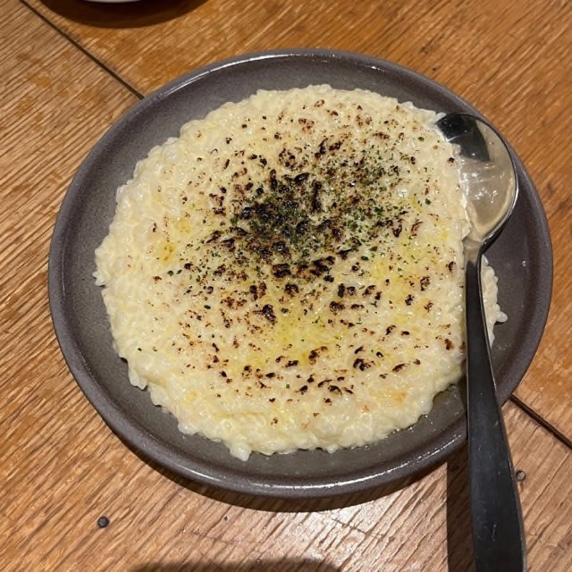 チーズリゾットが提供されたころから、リゾット、パエリア、ピラフ、チャーハン、おかゆの作り方の違いについて高橋次長から質問が始まりその話をしていました。