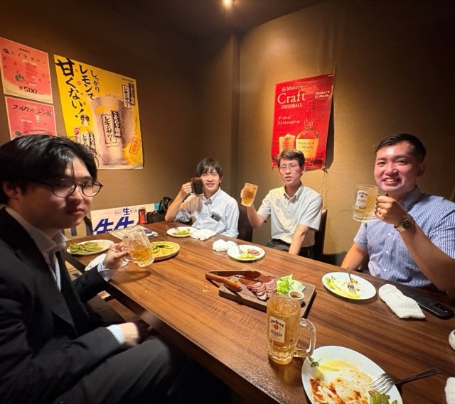 食事の間はプライベートや世間話で盛り上がりました。皆さんの意外な一面を知ることができただけでなく、年齢がそれほど変わらないのにジェネレーションギャップを感じる場面が多くとてもビックリしました。