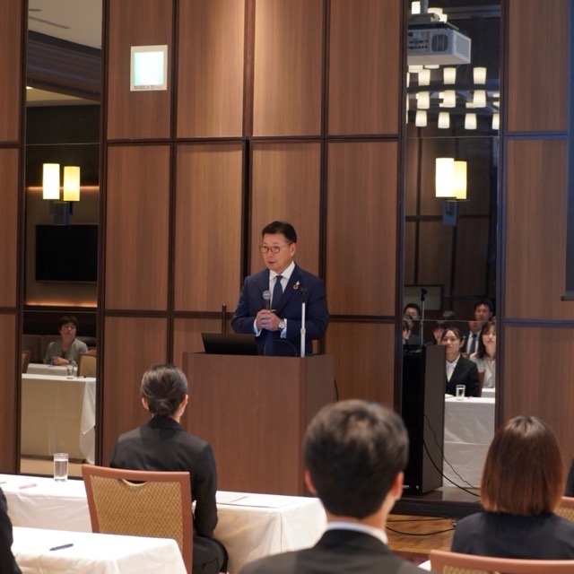 続いて、各部署、各課、プロジェクトの代表の方から業務内容について紹介がございました。内定者の皆さんも緊張した様子でしたがしっかり聞いてくださいました!