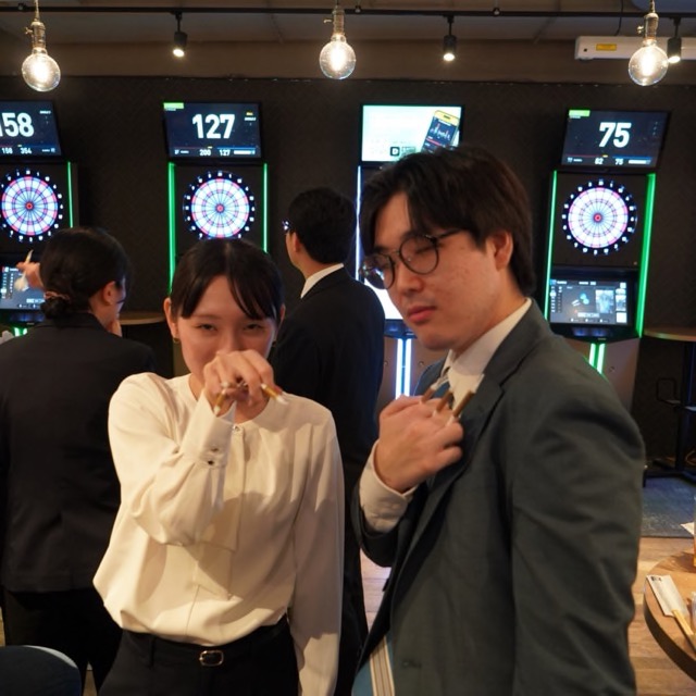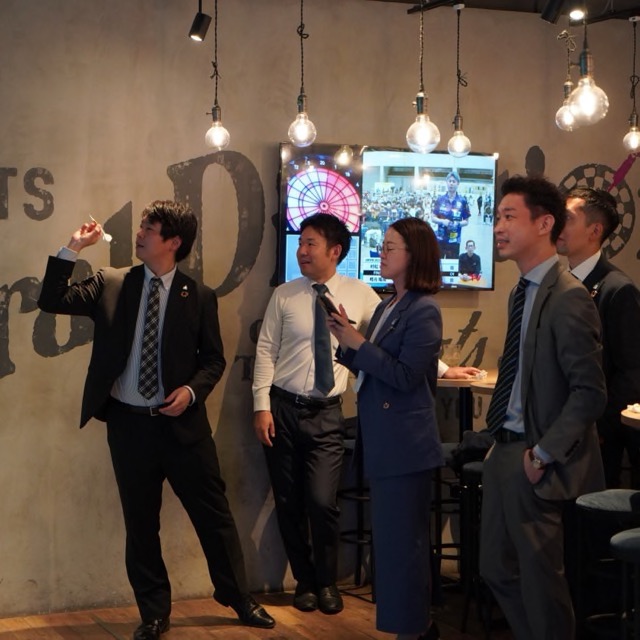 私たちも慣れたもので、早速ダーツの練習を始めてます。