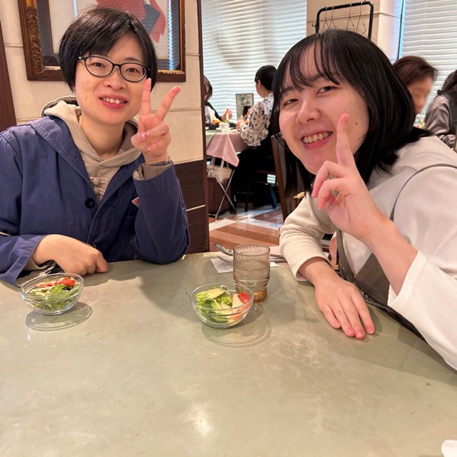 オムライスを待っている間に姉とツーショットを撮りました。