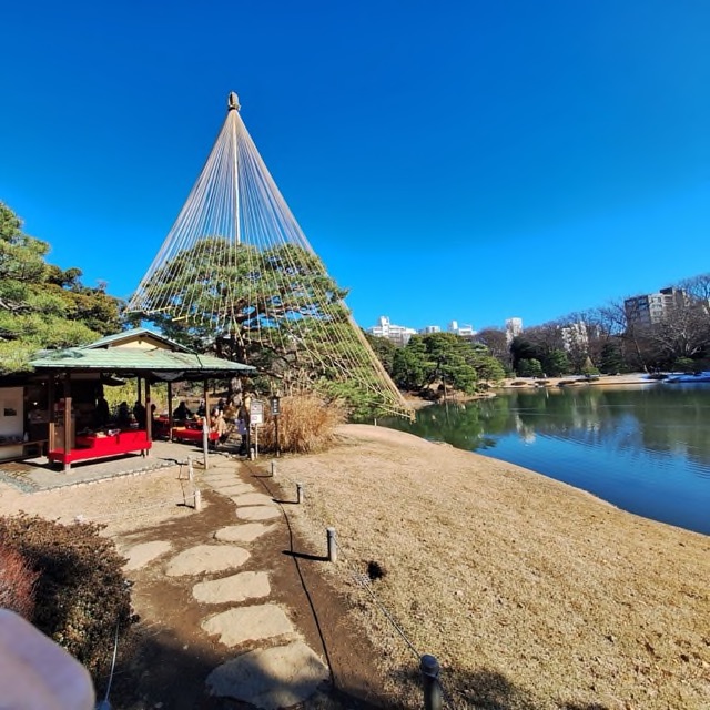 冬らしい雪吊もあり、晴天に映えます。青空がとても気持ちが良かったです。