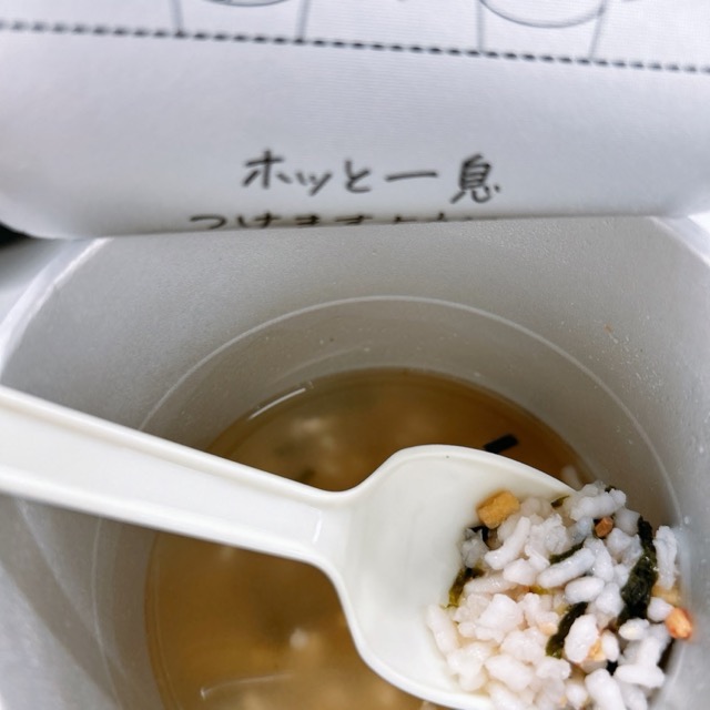 熱湯を注いで待ち、蓋をはがし、冷まし、米と具とスープをいただきます。