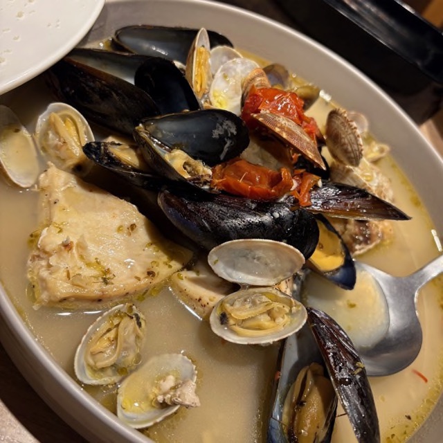 カジキマグロのアクアパッツァはあまり食べ慣れない料理でしたが、身がほろほろとやわらかく、素材の旨みがしっかり感じられる一品で、思わず笑みがこぼれるおいしさでした。