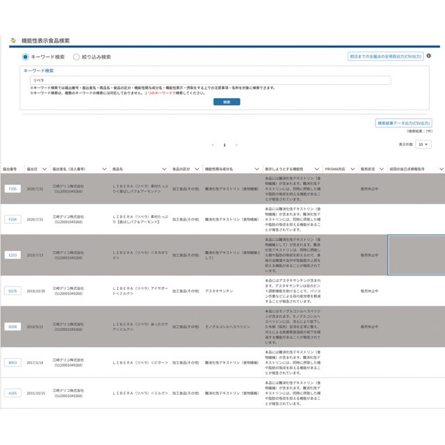 消費者庁の機能性表示食品データベースの方でも調べておきましょう。