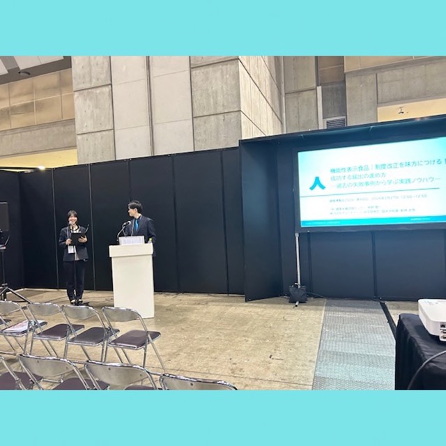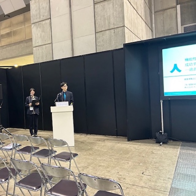 最後に、今回の健康博覧会でのセミナーに出演した司会の除村さんと発表していただいた新林さんのお写真です!!