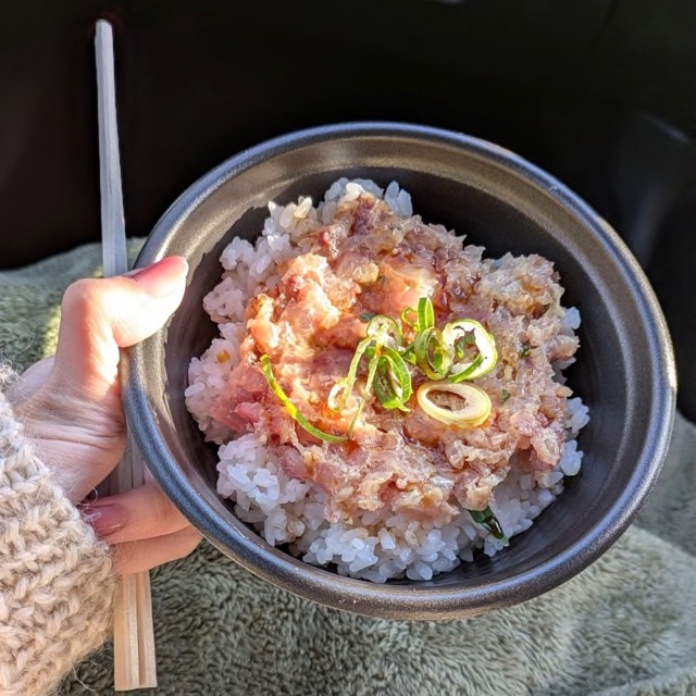 なめろう丼、イカ焼き、あら汁、タコ飯に伊勢海老飯です♡