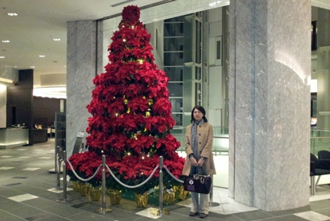 帰り際、ホテルのロビーには真っ赤なクリスマスツリーが飾ってありました。